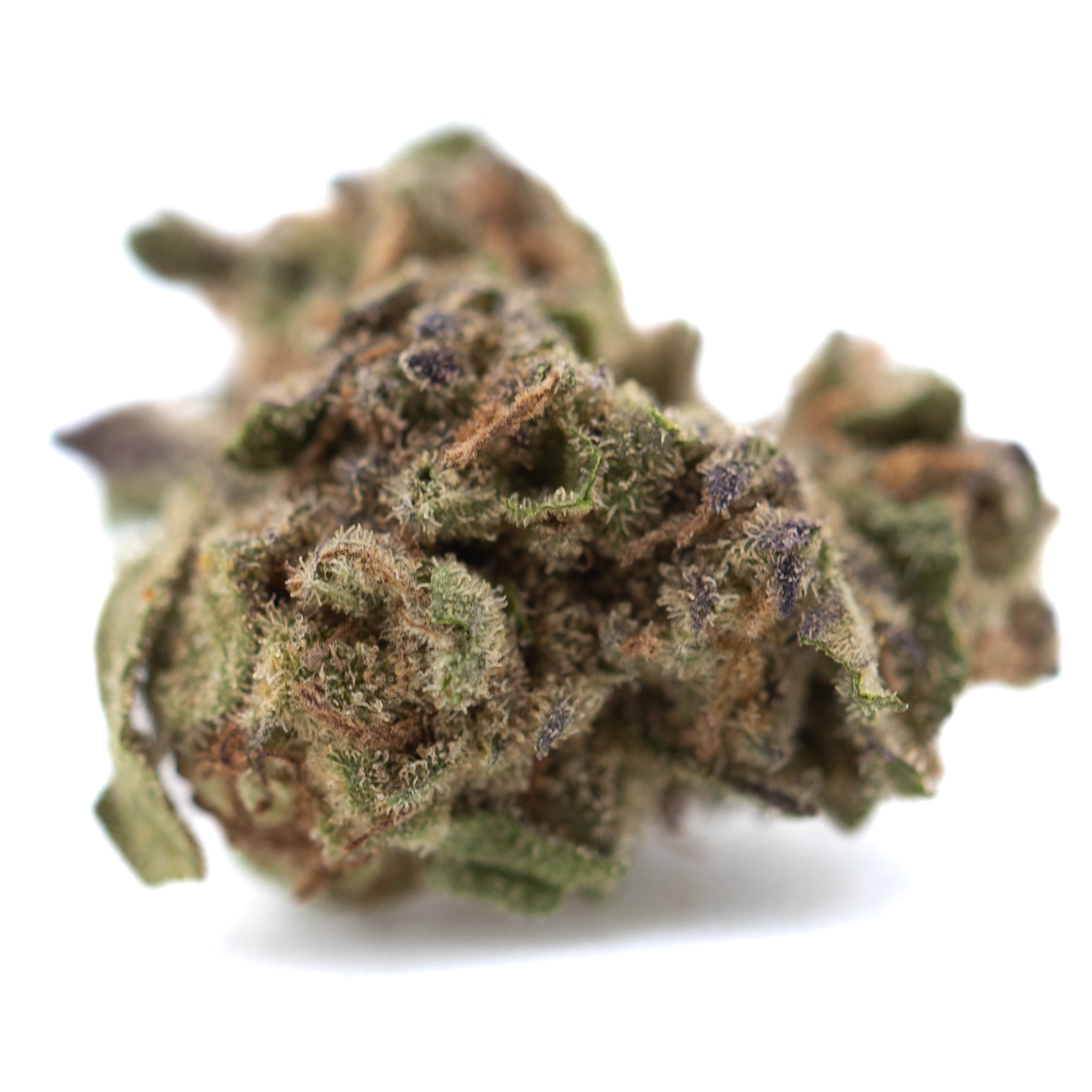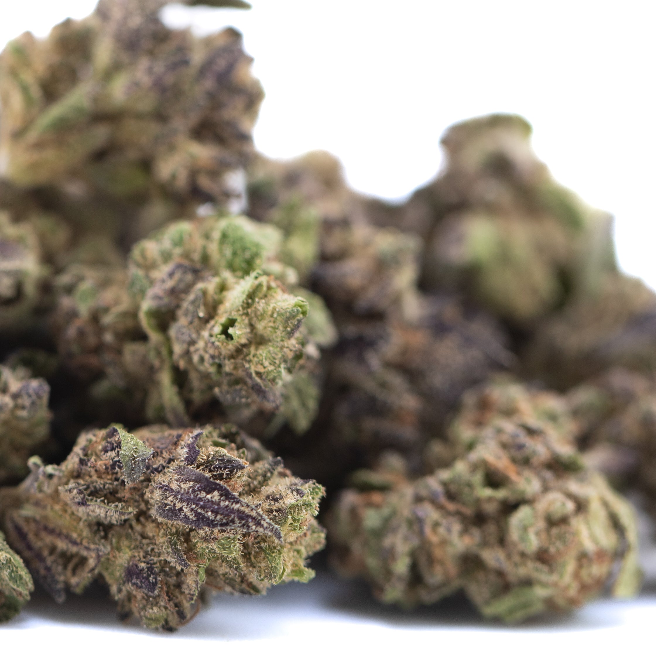 18. What creates the purple coloration? Anthocyanin pigments inherited from Blueberry Muffin's genetics, activated by cool nighttime greenhouse temperatures. The purple tinting extends to the trichomes themselves—creating smalls THCa flower with genuinely majestic visual appeal.
